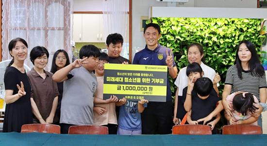 전남드래곤즈(전남)는 미드필더 이후권이 광양 백운산지역아동센터를 찾아가 100만 원을 기부하며 어린이들을 응원했다고 22일 밝혔다.