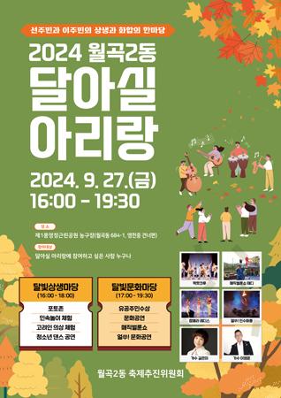 광주 광산구 월곡2동은 선주민과 이주민의 상생과 화합의 한마당인 ‘달아실 아리랑’이 27일 제1풍영정근린공원에서 열린다고 밝혔다.