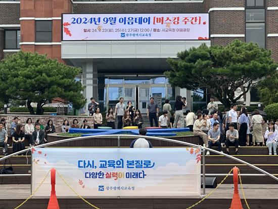 광주시교육청은 23일 점심시간 본청 야외 소통무대인 이음광장에서 \'이음데이’ 행사를 가졌다. /광주시교육청 제공