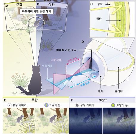 송 교수는 “이번 연구 성과를 통해 고양이의 수직 동공과 휘판 구조를 모사해 고감도 인공 시각 시스템을 개발하고, 단안 위장 해제 능력을 성공적으로 입증했다”고 강조하며 “다양한 조명 환경에서도 소프트웨어 후처리 없이 하드웨어 자체로 객체 인지 능력을 향상시킬 수 있어 자율주행 자동차, 드론, 감시 로봇 등 다양한 분야에 적용될 수 있을 것으로 기대한다”고 설명했다.