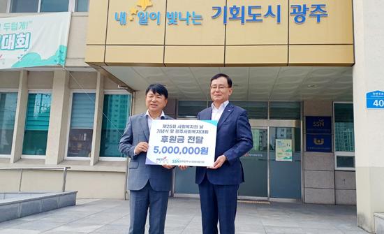 한국건강관리협회 광주전남지부는 창립60주년을 맞아 24일 광주시 사회복지협의회을 방문해 사회복지종사들을 돕는 후원금을 전달했다.