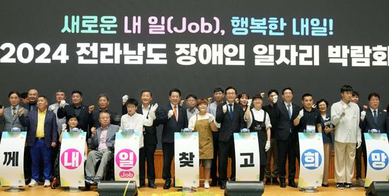 전남도는 전남지역 최초 ‘장애인 일자리 박람회’가 공공기관과 장애인표준사업장 등 73개 업체에서 184명 채용을 목표로 26일 나주 종합스포츠파크 다목적체육관에서 개최했다.