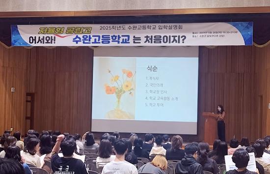 수완고등학교는 지난 26일 솔빛관에서 지역 중학교 3학년 학생 및 학부모 300여 명이 참석한 가운데 ‘2025학년도 입학설명회’를 개최했다.