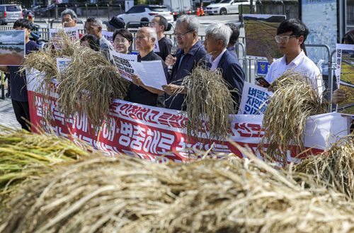 이날 대통령실 앞에서는 전국농민회총연맹, 전국쌀생산자회협회 등이 주최한 병충해·수혜 특별대책 촉구대회가 열렸고 진보당 전종덕(비례대표) 의원 등이 참석했다.