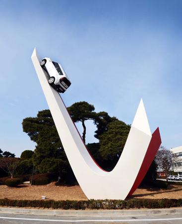 이 조형물은 영국의 세계적 설치미술가인 제리 주다(Gerry Judah)가 디자인한 것으로 주다는 전 세계 유명 자동차기업의 상징 조형물 디자인과 제작 경험을 가지고 있다.