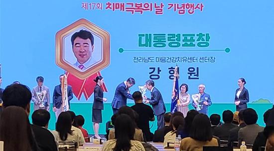 강형원 교수(전남도 마음건강치유센터장)가 치매 환자와 보호자를 위한 헌신적인 노력과 공로를 인정받아 제17회 치매극복의 날 기념 대통령 표창을 수상했다.