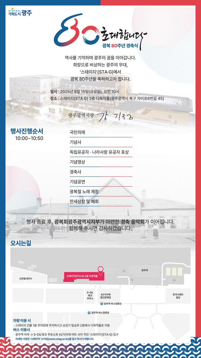 광주시, 15일 광주역 '스테이지'서 제80주년 광복절 경축식 열린다