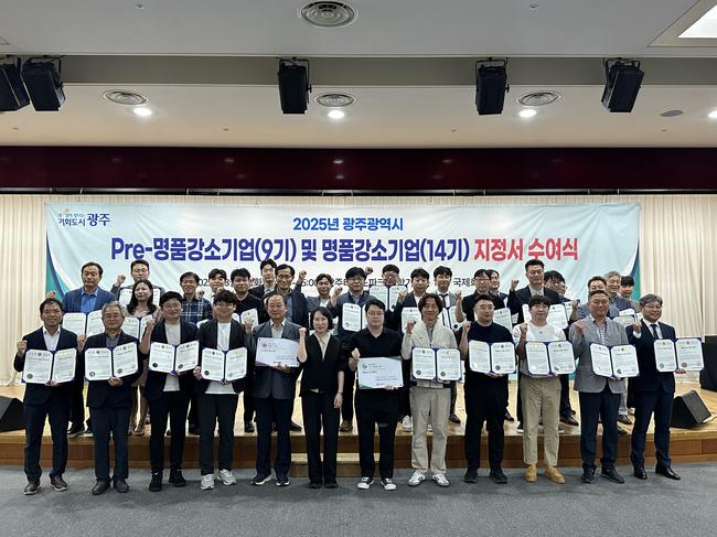 광주광역시는 지역경제를 이끌 ‘제9기 프리(Pre)-명품강소기업’ 13개사와 ‘제14기 명품강소기업’ 19개사를 선정, 26일 광주테크노파크에서 ‘지정서 수여식’을 개최했다.