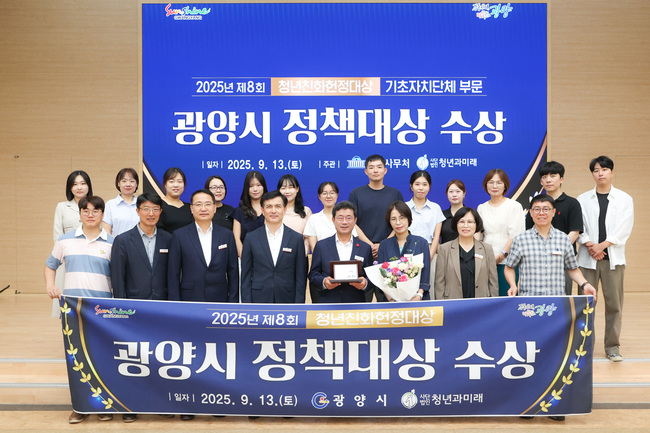 광양시, 제8회 청년친화헌정대상 정책대상 수상...2년 연속 쾌거
