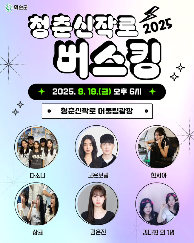 화순군은 오는 19일 오후 6시 청춘신작로 어울림광장에서 버스킹 공연을 개최한다고 밝혔다.