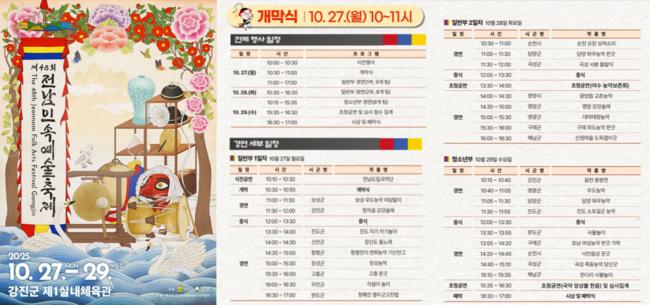 강진군 제1실내체육관 일원에서 제48회 전라남도 민속예술축제가 오는 27일부터 29일까지 3일간 열린다.