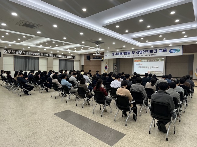 영광군은 최근 강화된 산업안전관련 법령에 대한 이해를 높이고, 안전관리 역량을 강화하기 위해 「중대재해처벌법 및 산업안전보건 교육」을 실시했다고 밝혔다.