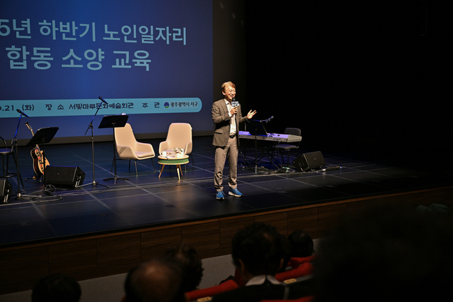 서구는 지난 15일부터 22일까지 4차례에 걸쳐 서빛마루문예회관에서 노인일자리 참여 어르신 1,200여 명을 대상으로 교육과 토크 콘서트가 어우러진 ‘합동 소양 및 활동 교육’을 개최했다.