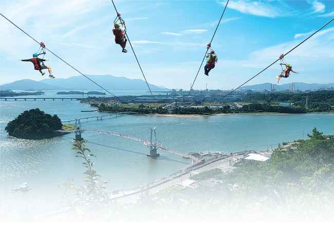 ‘섬진강 별빛스카이 공중하강체험시설’은 섬진강을 가로지르는 와이어 케이블을 따라 하강하며, 망덕포구와 배알도의 절경을 한눈에 조망할 수 있는 체험형 레포츠 시설이다.