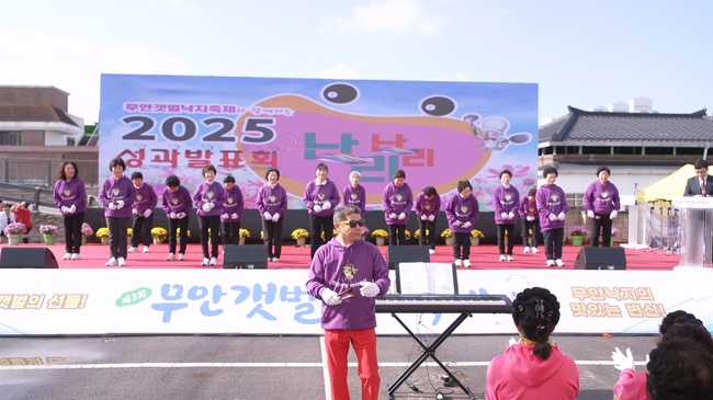 무안군은 지난 1일 무안읍 갯벌낙지축제 주무대에서 2025년 무안군 일반농산어촌개발사업 성과발표회 ‘난리난리 3탄’을 낙지축제와 연계하여 개최했다.