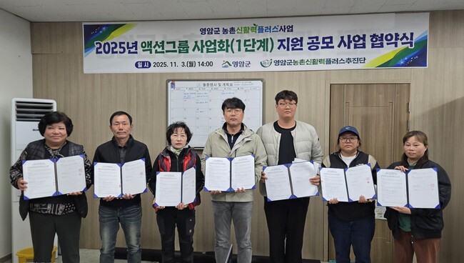 영암군농촌신활력플러스추진단이 지난 3일 추진단 사무실에서 액션그룹 대표, 회원 등 12명이 참석한 가운데 ‘2025년 농촌신활력플러스사업 액션그룹 사업(1단계) 지원 공모사업 협약식’을 가졌다고 밝혔다.