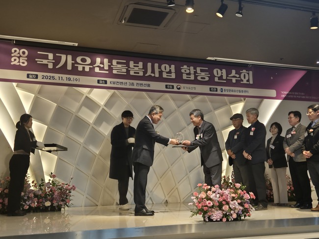 전북특별자치도는 지난 19일 국가유산청이 주관한 ‘2025년 문화유산 돌봄 합동연수회’에서 문화유산 돌봄사업을 체계적으로 관리·운영한 공로를 인정받아 국가유산청장 기관 표창을 받았다고 밝혔다.