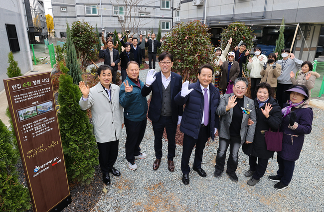 완료식에는 임택 구청장, 문선화 동구의회 의장, 성낙원 SM스틸(건설부문) 대표, 주민자치회, 주민 등이 참석해 사업 추진 경과를 공유하고, 새롭게 조성된 정원을 둘러보며 변화된 환경을 확인했다. 행사는 경과보고, 현장 관람, 기념촬영 순으로 진행됐으며 향후 주민 참여형 정원 관리 방향도 안내됐다.