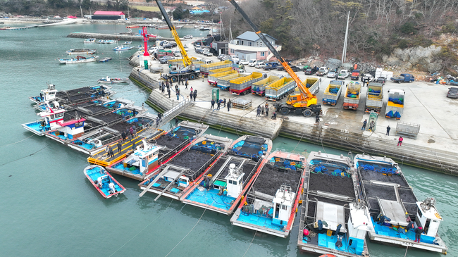 '수산 1번지’인 완도군은 지난 11월 3일 군외면 당인리에서 첫 위판이 이뤄진 후 4,949 마대, 약 594톤의 물김이 거래됐다.