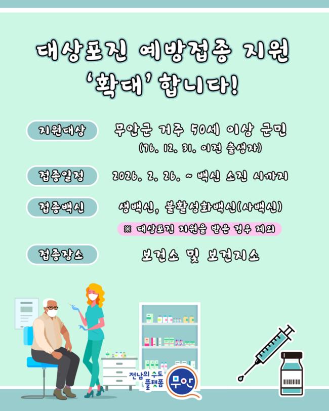 대상포진 예방접종 지원 안내 / 무안군 제공
