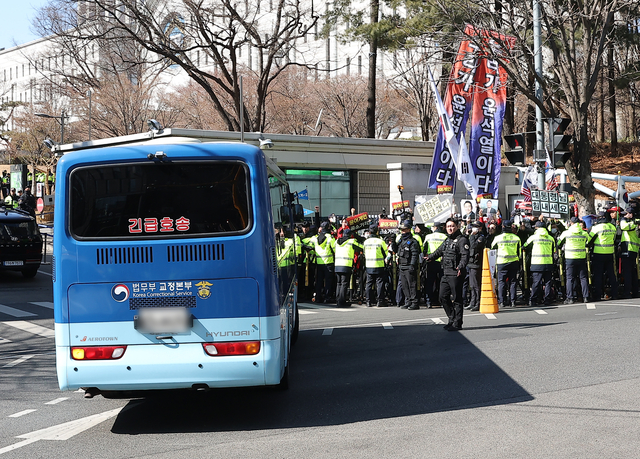 '내란 우두머리' 윤석열 호송차 법원 도착