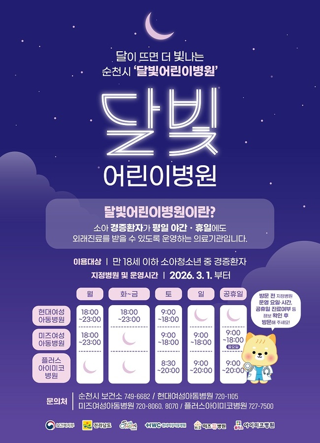 순천 달빛어린이병원, 3월 1일부터 진료시간 변경 운영