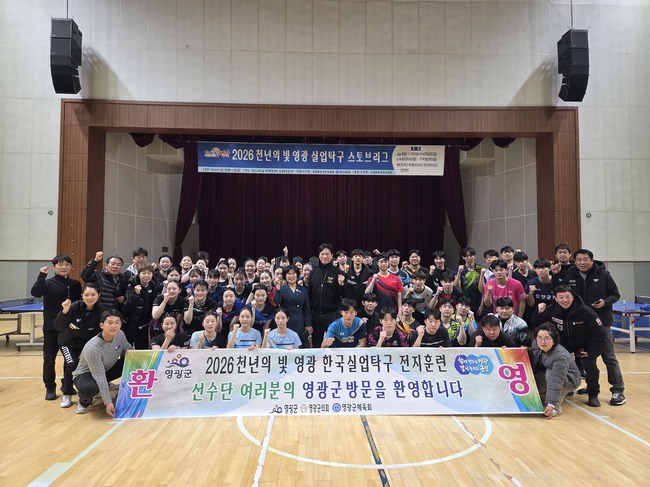 영광군은 지난 2일부터 6일까지 5일간 전국 실업탁구단 11개 팀, 200여 명의 선수단 및 관계자가 영광스포티움 국민체육센터에서 2026시즌을 대비한 스토브리그가 진행 중이라고 알렸다.