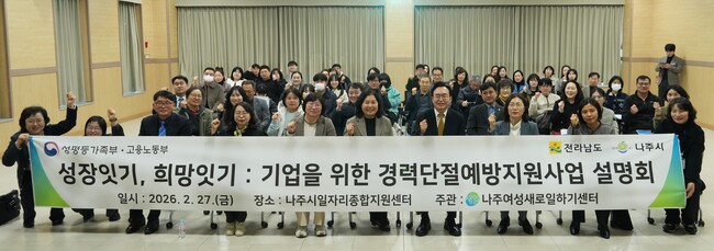 나주여성새로일하기센터는 최근 관내 45개 기업과 6개 유관기관이 참석한 가운데 ‘2026년 경력 단절 예방 지원 사업 홍보 및 조직문화 개선 설명회를 개최했다고 6일 밝혔다.