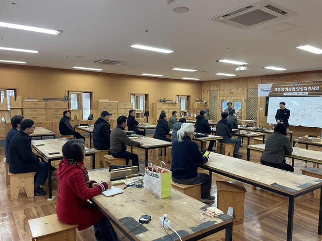 영암군이 7일 군서면 목재문화체험장에서 ‘2026년 목공예 기능인 양성교육’ 제11기를 개강했다.
