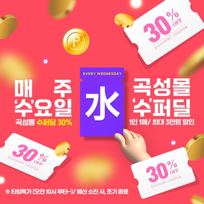 곡성군은 군 공식 온라인 쇼핑몰 ‘곡성몰’에서 오는 3월 18일부터 ‘매주 수요일 30% 웬(즈)?! 특가’ 기획전을 운영한다고 밝혔다.