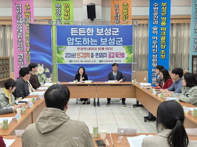 보성군은 지난 20일 군청 4층 대회의실에서 본청 인구정책과와 12개 읍면 인구정책 담당 공무원을 대상으로 ‘2026년 인구정책 읍면 담당자 공감 워크숍’을 개최했다고 밝혔다.
