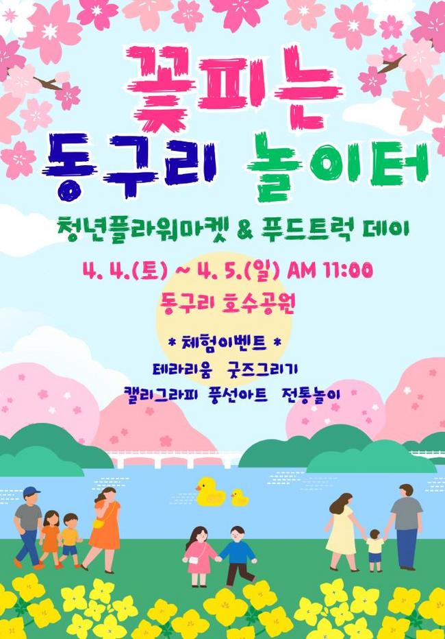 이번 행사는 벚꽃 개화 시기에 맞춰 동구리 호수공원을 찾는 방문객들에게 다양한 먹거리와 체험 프로그램을 제공해 봄나들이의 즐거움을 더하고, 가족·연인·친구와 함께 특별한 추억을 만들 수 있도록 마련됐다.