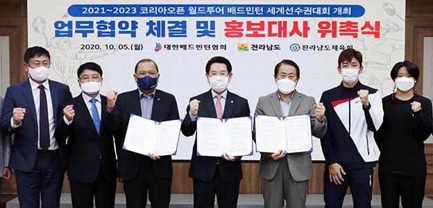 전남도가 세계 배드민턴 최정상이 기량을 겨룰 '2021~2023 코리아오픈 월드투어 배드민턴 세계선수권대회' 성공 개최를 위해 관련 협회 등과 힘을 모으기로 했다.