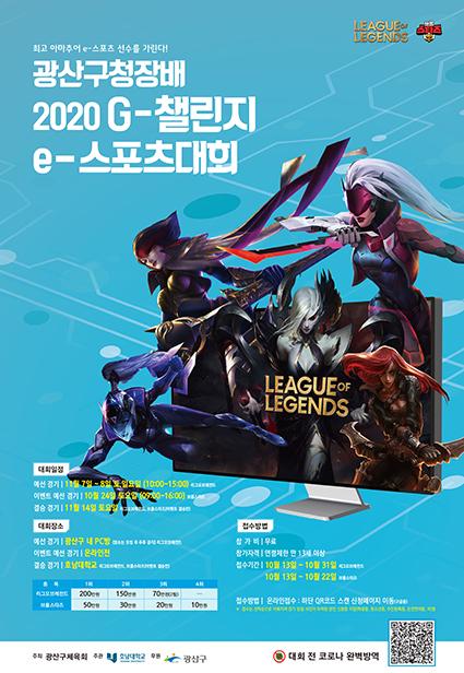 광산구가 코로나19로 침체된 지역사회에 활력을 더하기 위해 10월24~11월14일 ‘광산구청장배 2020 G-챌린지 e-스포츠 대회’를 개최한다.