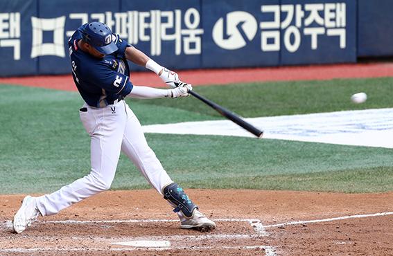 11일 오후 서울 송파구 잠실야구장에서 열린 2020 신한은행 SOL KBO리그 LG 트윈스 대 NC 다이노스의 경기, 4회초 2사 1루에서 NC 알테어가 안타를 날리고 있다.