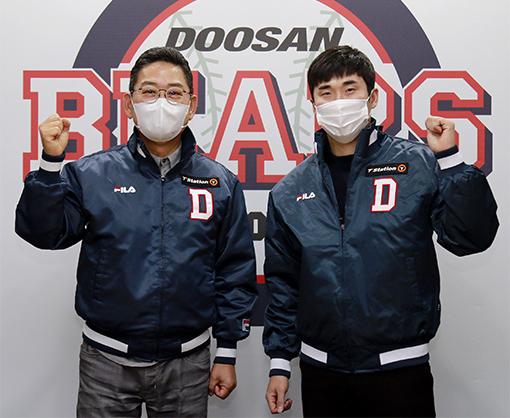 허경민(오른쪽)과 전풍 두산베어스 대표이사. /두산 베어스 제공