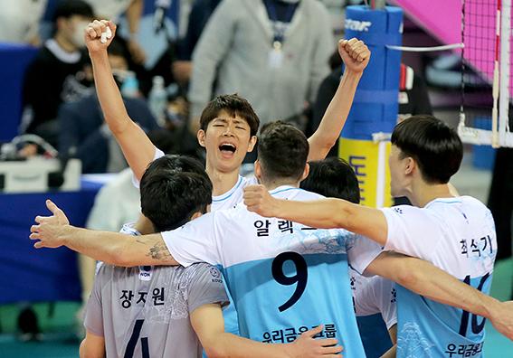 우리카드가 천신만고 끝에 대한항공의 추격을 뿌리쳤다.