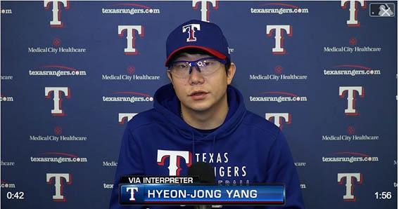 초청 선수 신분으로 텍사스의 MLB 스프링캠프에 참가 중인 양현종은 시범경기 첫 등판이었던 8일 LA 다저스전에서 1이닝 2피안타(1홈런) 1탈삼진 1실점으로 흔들렸다.