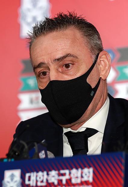 파울루 벤투 대한민국 축구국가대표팀 감독이 15일 오전 서울 종로구 축구회관에서 3월 친선 A매치 한일전 명단발표 기자회견을 하고 있다. 2021.03.15.