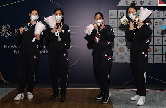 최인정(계룡시청), 강영미(광주광역시 서구청), 송세라(부산광역시청), 이혜인(강원도청)이 출전한 여자 에페 대표팀은 23일(현지시간) 러시아 카잔에서 열린 국제펜싱연맹(FIE) 월드컵 단체전에서 24-25로 져 준우승을 차지했다.