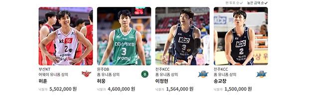 2위는 친형 허웅의 녹색 홈 유니폼으로 낙찰가 460만원을 기록했다.