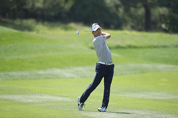 문경준이 30일 경기도 여주 블랙스톤GC에서 KB금융 리브챔피언십 3라운드 1번홀에서 세컨드 아이언 샷을 하고 있다. (사진=KPGA제공) 2021.05.30.