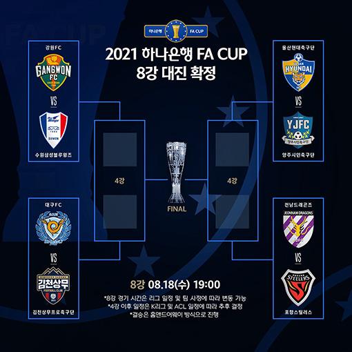 FA컵 8강전은 8월18일 열리며, 경기 장소와 시간은 추후 결정된다.