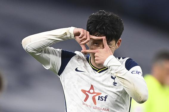 손흥민이 2일(현지시간) 영국 런던의 토트넘 홋스퍼 스타디움에서 열린 셰필드 유나이티드와의 2020-21시즌 잉글랜드 프리미어리그(EPL) 34라운드 후반 32분 팀의 네 번째 골을 넣고 찰칵 세리머니를 하고 있다. 손흥민은 1골-1도움으로 리그 16호 골-10도움을 기록하며 팀의 4-0 승리에 이바지했다. 2021.05.03.