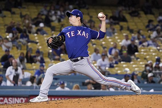 텍사스 레인저스 양현종이 11일(현지시간) 미 캘리포니아주 로스앤젤레스의 다저스타디움에서 열린 2021 메이저리그(MLB) LA 다저스와의 원정 경기에 0-8로 뒤진 3회 교체 출전해 4회 투구하고 있다. 양현종은 1⅓이닝 4피안타(2홈런) 2볼넷 2실점 후 5회 교체됐다. 2021.06.12.