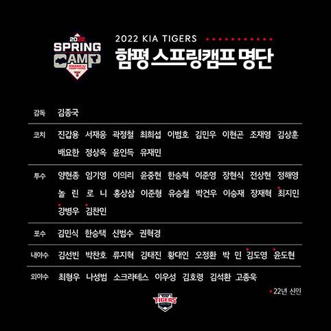 프로야구 KIA 타이거즈 2022시즌 스프링캠프 참가 명단. (사진 = KIA 타이거즈 제공)