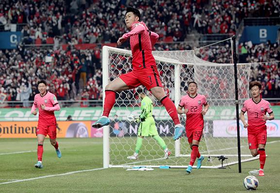 24일 오후 서울 마포구 서울월드컵경기장에서 열린 2022 FIFA 카타르 월드컵 아시아 지역 최종예선 대한민국과 이란의 경기, 손흥민이 득점한 뒤 포효하고 있다. 2022.03.24.
