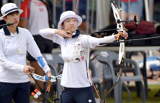 최미선(순천시청)-이가현(대전시체육회)-안산(광주여대)으로 꾸려진 여자대표팀은 19일 광주국제양궁장에서 열린 대회 여자 리커브 단체전 준결승에서 인도를 6-2(55-53 55-57 53-51 53-43)로 꺾었다.
