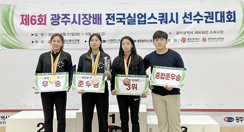 광주체육회는 광주시체육회관에서 열린 제6회 광주시장배 전국실업스쿼시선수권대회에서 남녀 스쿼시팀이 금메달 1개, 은메달 1개, 동메달 2개를 획득하며 종합 준우승을 차지했다고 27일 밝혔다. (사진=광주체육회 제공).