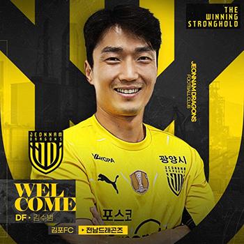 전남드래곤즈 축구단은 공격축구로 인해 수비의 허점이 생겨 실점을 허용하는 경향이 많아지자 수비 강화를 위해 김포FC 측면 수비수 김수범 선수를 영입했다.